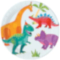 8 st. papptallrikar med färgglada dinosauriemotiv som gör dukningen både lekfull och inbjudande. De glada dinosaurierna tillsammans med palmer och små partydetaljer skapar en härlig festkänsla som passar perfekt till ett roligt barnkalas. Tallrikarna är 23 cm i diameter och är tillverkade av FSC-certificeret papper.