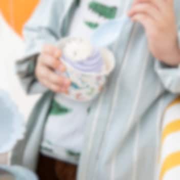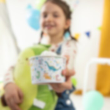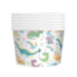 6 st. små glassbägare i vackra färger med gulliga motiv av olika dinosaurier. Bägarna är perfekta att servera glass, godis, snacks eller andra godsaker i. De rymmer 150 ml och har en storlek på 6 × 7 cm. Tillverkade av papp.