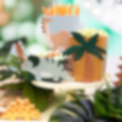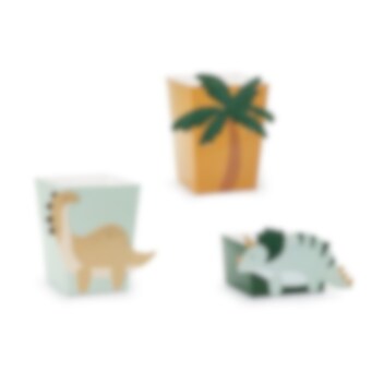 Gör kalaset ännu mer spännande med dessa coola snacksboxar i dinosaurie-tema. Varje förpackning innehåller sex boxar i tre olika modeller, perfekta för att servera snacks, godis eller små överraskningar i till dina gäster. Storleken på boxarna är 9,5 x 9,5 x 12 cm och 10 x 10 x 5 cm. Tillverkade av papp.