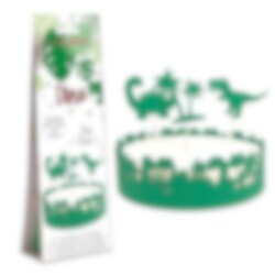 Coola dekorationer i ett tufft dinosaurietema. Dekorera födelsedagstårtan med detta ScrapCooking kit när det vankas dinosauriekalas. Förpackningen inkluderar 1 st. cake wrapper som är mellan 18 - 24 cm stor och 3 st. cake toppers som är ca 6 cm höga.