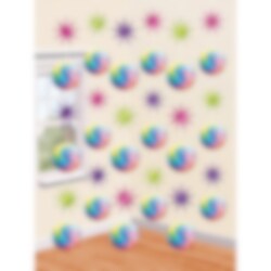 6 st. hängande dekorationer i fräckt Discotema. Coola att ha i rummet när det är dags för discokalas. Dekorationerna är ca 2,1 m långa.