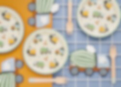6 st. assietter i härliga färger med olika motiv av arbetsfordon. För den som är intresserad av fordon och byggarbetsplatser så är dessa assietter ett självklart val till ett sött temakalas.
