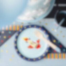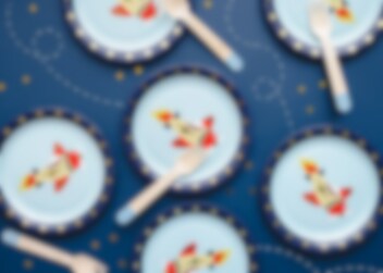 6 st. assietter i två nyanser av blått med motiv av ett flygplan och dekorativa stjärnor. För den som är intresserad av flygplan så är dessa assietter ett självklart val till ett temakalas med flygplanstema.