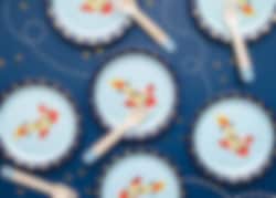 Assietterna är tillverkade av papper och är 18 cm i diameter.
