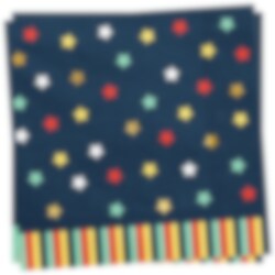 12 st. vackra servetter med motiv av stjärnor mot en blå bakgrund och färgglada ränder. Utmärkta att duka fram med till ditt kalas med flygtema. Matcha gärna servetterna med andra roliga dukningstillbehör och dekorationer från temat. Servetterna har 2 lager och är 33 x 33 cm stora utvikta.