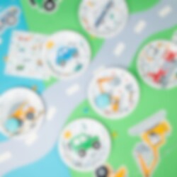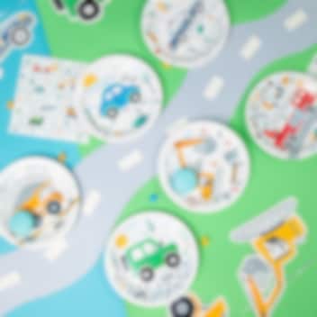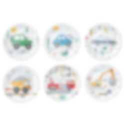 6 st. pappassietter med motiv av färgglada fordon, perfekta till ett kalas med fordonstema! Assietterna har en diameter på ca 18 cm.