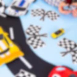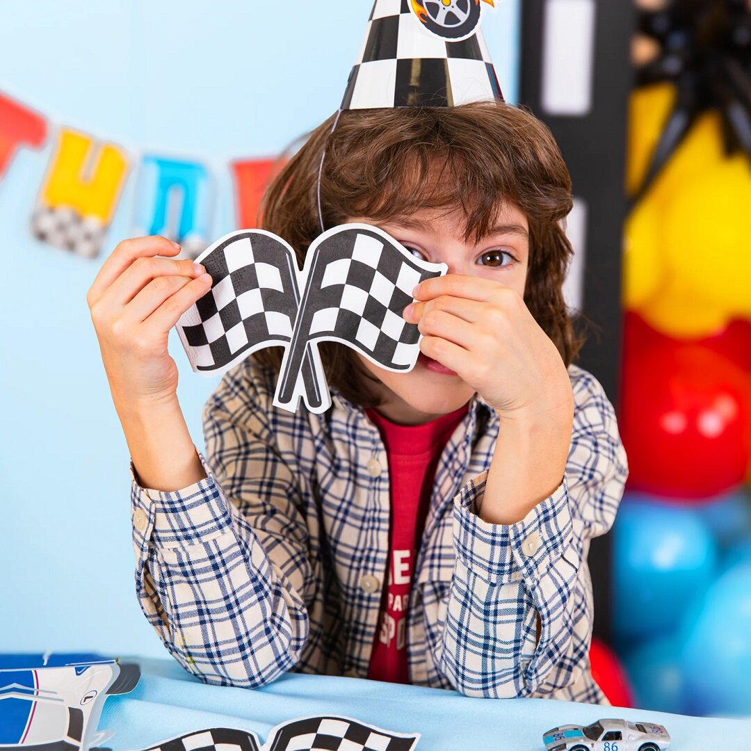 12 st. servetter formade som en klassisk schackrutig målflagga i svart och vitt. Perfekta när du vill få till en enhetlig och fartfylld dukning på kalaset med Racing Car-tema.