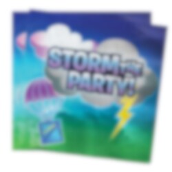 16 st. färggranna servetter med motiv av texten "Storm the Party!" på ena sidan. Perfekt tillbehör till kalaset med Battle Royal som tema. Servetterna är 2-lagers och är ca 33 x 33 cm stora utvikta.