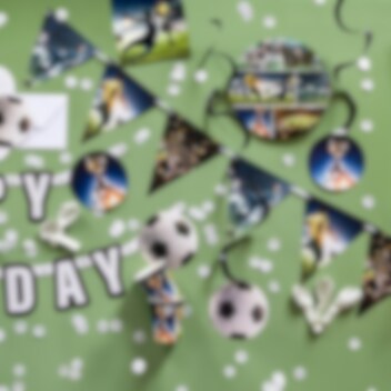 Dekorera ditt fotbollskalas med denna dekorativa flaggirlang av papp med coola fotbolls-motiv. Med en längd på hela 4 meter och 15 vimplar skapar denna girlang en festlig stämning.