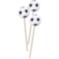 8 st. partypicks med motiv av fotbollar på toppen. En kul grej att dekorera tårtan med inför fotbollskalaset. Picksen är ca 21 cm långa och fotbollarna är ca 4,5 cm i diameter.