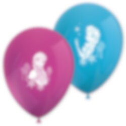 8 st. ballonger i blå och rosa färger med motiv på systrarna Anna och Elsa från Frost 2. Dekorera rummet med dessa när det är dags för ett magiskt kalas med Frosttema. Ballongerna är ca 30 cm i diameter när dem är uppblåsta. Kan blåsas upp med vanlig luft eller helium.
