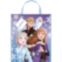 Presentpåse i fina färger med motiv av Anna, Elsa, Kristoffer och Olaf från filmen Frost 2. Lägg i presenten i denna påse när det vankas kalas med Frost som tema. Påsen är tillverkad av plast och är ca 33 x 28 cm stor.