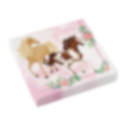 20 st. servetter i rosa och vita nyanser med motiv på båda sidor av vackra hästar samt färgsprakande blommor längs kanterna. Servetterna är 2-lagers och är ca 33 x 33 cm stora utvikta.