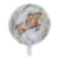 Detta färdiga kalaspaket i stilfullt hästtema inkluderar tallrikar (21 x 21 cm), pappmuggar (270 ml) och servetter (33 x 33 cm) för 10 eller 20 personer, utöver det så ingår 10 st. mörkgröna och 10 st. guldfärgade ballonger samt en mörkgrön bordsduk av plast (137 x 274 cm).