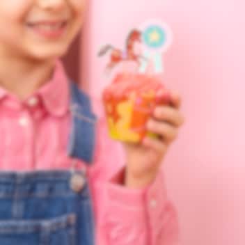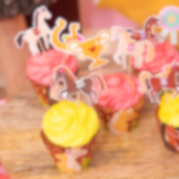 Toppa muffins, tårta eller snittar med dessa charmiga cake toppers i hästtema. Setet innehåller allt från galopperande hästar till hästskor, rosetter och prispokaler, perfekt för att skapa ett riktigt hästfestligt dessertbord. Dekorationerna är cirka 11 cm höga och tillverkade av trä och papper.