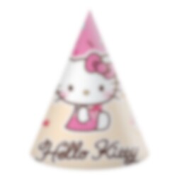 6 st. kalashattar med motiv av Hello Kitty och Kuromi. Hattarna är ca 19 cm höga och hålls plats med ett resårband.