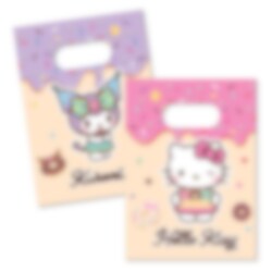 4 st. kalaspåsar av papper i fina färger med söta motiv av Hello Kitty och Kuromi. Perfekta att fylla med godis, små leksaker eller roliga överraskningar som barnen kan ta med sig hem efter kalaset.