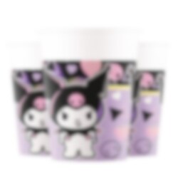 8 st. pappmuggar med coolt och färgstarkt motiv av Kuromi mot en lila och svart bakgrund med hjärtan och skallar. Perfekta när du vill få till en enhetlig och tuff dukning på kalaset med Kuromi-tema.