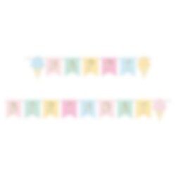 Girlang av papp i vackra pastellfärger och med motiv av glassar samt den guldfolierade texten "Happy Birthday". Häng upp girlangen på väggen eller ovanför bordet inför kalaset med Ice Cream Party tema. Girlangen är ca 2,52 meter lång och motiven är ca 16,5 cm stora.