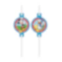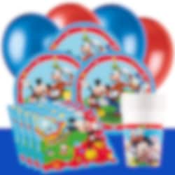 Detta färdiga kalaspaket med originaltillbehör i Musse Pigg inkluderar tallrikar (23 cm), pappmuggar (200 ml) och servetter (33 x 33 cm) för 8, 16 eller 24 personer. Utöver det så ingår 10 st. röda ballonger och 10 st. mörkblå ballonger och en mörkblå bordsduk av plast (137 x 274 cm). I paketet för 24 gäster så ingår 2 st. bordsdukar.