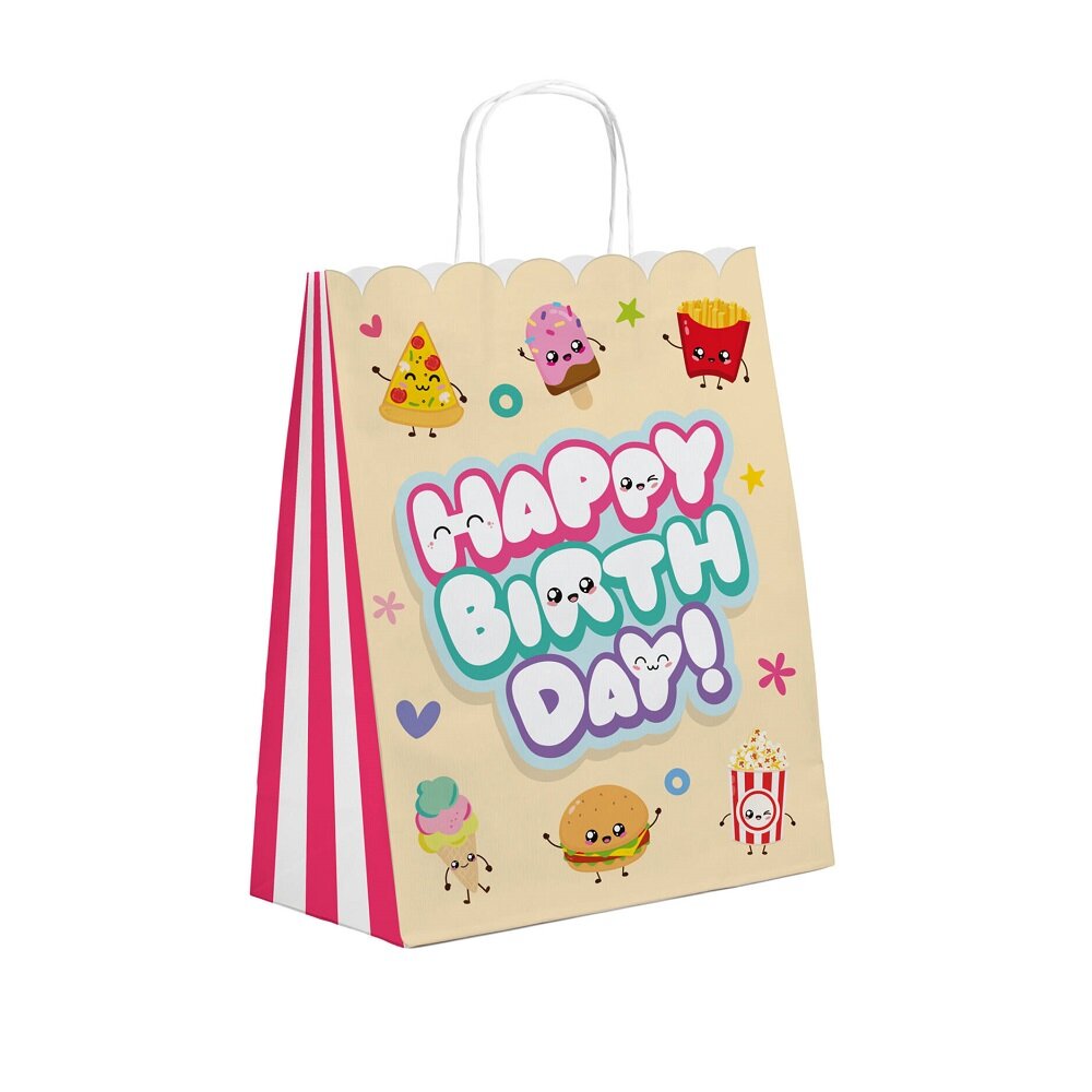6 st. kalaspåsar i Kawaii-tema som blir en färgglad och lekfull detalj till barnkalaset. Påsarna pryds av söta illustrationer av frukter, snacks och godsaker tillsammans med texten Happy Birthday, vilket gör dem perfekta för ett kalas i Kawaii-tema.