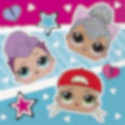 16 st. små servetter med skojigt LOL Surprise motiv. Servetterna är 2 lagers, ca 25 x 25 cm utvikta.