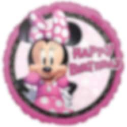 Svart och rosa folieballong med gulligt Mimmi Pigg motiv samt texten "Happy Birthday". En riktigt fin dekoration att ha med på kalaset med Mimmi Pigg tema. Ballongen är ca 43 cm i diameter uppblåst och blåses lättast upp med helium.
