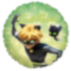 Folieballong med fint motiv av Cat Noir från Miraculous Ladybug. Ballongen är 45 cm i diameter och kan fyllas med luft eller med helium. Ballongen har en självslutande ventil och för att blåsa upp den med vanlig luft så behöver du en ballongpump, alternativt ett sugrör.