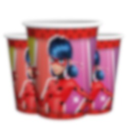 10 st vackra pappmuggar med motiv från Miraculous Ladybug. Muggarna är 10 cm höga och rymmer 250 ml.