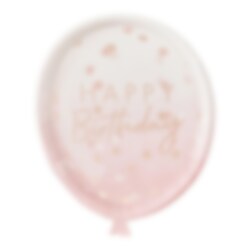 8 st. ballongformade papptallrikar i en rosa ombre samt med motiv av prickar och texten "Happy Birthday" i roséguldfolie. Underbara att duka fram inför kalaset. Tallrikarna kommer från kollektionen Mix it Up och är ca 23 cm i diameter.