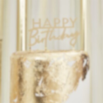Tårtdekoration i en guld akrylfärg som bildar orden "Happy Birthday". Den ultimata dekorationen att pynta tårtan med inför alla kalas. Tårtdekorationen är ca 10 cm hög.