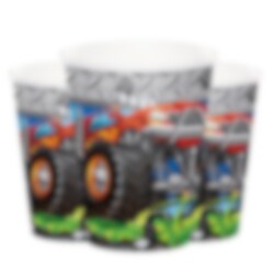 8 st. pappmuggar med coola Monster Truck motiv. Muggarna är ca 10 cm höga och rymmer ca 266 ml.