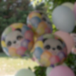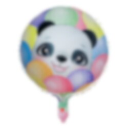 Rund folieballong med motiv av en gullig panda. En rolig dekoration att ha med till kalaset.