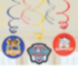 Hängande dekorationer med söta motiv av hudarna i temat Paw Patrol. Dekorera kalasrummet med dessa för att skapa en mysig stämning. Förpackningen innehåller 6 dekorationer. 3 st. med motiv är ca 60 cm långa och 3 st. folieskruvar är ca 45 cm långa.