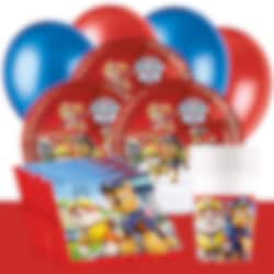 Detta färdiga kalaspaket i Paw Patrol tema med fina originaltillbehör inkluderar tallrikar (23 cm), pappmuggar (200 ml) och servetter (33 x 33 cm) för 8, 16 eller 24 personer, utöver det så ingår 10 st. röda ballonger och 10 st. mörkblå ballonger och en röd bordsduk av plast (137 x 274 cm). I paketet för 24 gäster så ingår 2 st. bordsdukar.