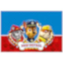 En snygg bordsduk i Paw Patrols klassiska färger blått och rött samt med motiv av Chase, Marshall och Rubble. Ett perfekt komplement till dukningen inför kalaset med Paw Patrol som tema. Bordsduken är gjord av plast och är 120x180 cm stor.