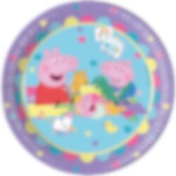 8 st. tallrikar med ett glatt motiv av Greta Gris och hennes vänner som leker tillsammans. Perfekta när du vill få till en enhetlig och färgglad dukning på kalaset med Greta Gris-tema.