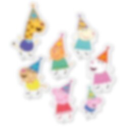Gör kalaset extra festligt med dessa bordsdekorationer föreställande Peppa Pig och hennes vänner! Setet innehåller sju färgglada pappfigurer som är perfekta för att skapa en glad kalasstämning. Figurerna är cirka 18 cm höga och är tillverkade av FSC-märkt miljövänlig papp.