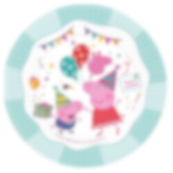 8 st. papptallrikar med ett färgglatt motiv av Peppa Pig och hennes bror George som firar födelsedag. Perfekta för att göra dukningen extra rolig på kalaset. Tallrikarna har en diameter på 23 cm.