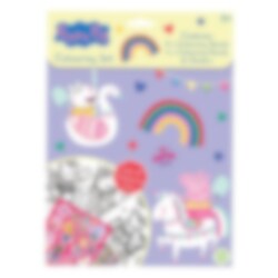Rolig målarbok som inkluderar 8 st. sidor att färglägga och 6 st. tillhörande färgkritor samt 1 st. ark med återanvändbara stickers med motiv från det populära barnprogrammet Greta Gris - Peppa Pig.