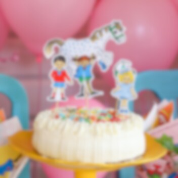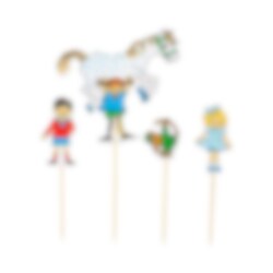 4 st. cake toppers med härliga Pippi Långstrump motiv. De är vackra att dekorera tårtor och muffins med. De är gjorda av trä och papp.