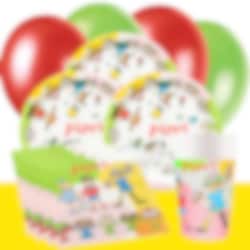 Detta färdiga kalaspaket med färgglada Pippi Långstrump originaltillbehör inkluderar tallrikar (23 cm), pappmuggar (250 ml) och servetter (33 x 33 cm) för 8 eller 16 personer. Utöver det så ingår 10 st. röda ballonger och 10 st. gröna ballonger samt en gul plastduk (137 x 274 cm).