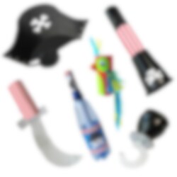 DIY - kit som lär barnen att ta vara på skräp och förvandla dem till konstprojekt. Här kan barnen skapa snygga saker för fyra personer till kalaset med pirattema.