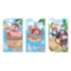 Liten anteckningsbok med motiv av pirater. Ett roligt tillbehör i kalaspåsen. Anteckningsboken är ca 10 x 6 cm stor och säljs osorterade och styckvis.