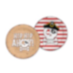 Duka upp till ett härligt piratkalas med dessa festliga tallrikar i klassiskt pirattema. Tallrikarna har två olika motiv, ett med texten "Hip Hip Ahoy!" på bakgrund som liknar en gammal skattkarta och ett med dödskalle, pirathatt och röda ränder, vilket ger dukningen en lekfull och äventyrlig känsla.