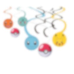 6 st. hängande dekorationer i olika färger med coola motiv av de mest ikoniska karaktärerna från Pokémon. Dekorationerna är ca 60 cm långa och har motiv på båda sidorna. De är tillverkade av papp.