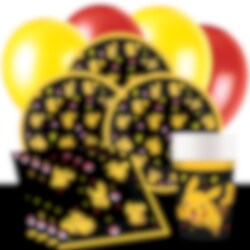 Detta färdiga kalaspaket med Pokémon inkluderar Pokémon tallrikar (23 cm), Pokémon pappmuggar (237 ml) och Pokémon servetter (33 x 33 cm) för 8, 16 eller 24 personer. Utöver det så ingår 10 st. gula och 10 st. röda ballonger samt en svart bordsduk i plast (137 x 274 cm). I paketet för 24 gäster så ingår 2 st. bordsdukar.