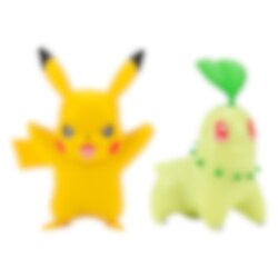 2 st. små stridsfigurer som föreställer Pikachu och Chikorita från Pokémon. Perfekta att leka tillsammans med din bästa vän för att se vem som är starkast av er.