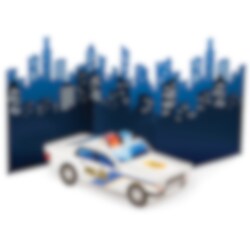 Häftig bordsdekoration föreställande en stad och en polisbil. En kul grej att dekorera kalasbordet med. Dekorationen är ca 69 x 30 cm stor.