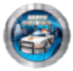 Rund folieballong med kul polismotiv. Folieballongen är ca 45 cm i diameter uppblåst. Ballongen kan blåsas upp med luft eller helium.